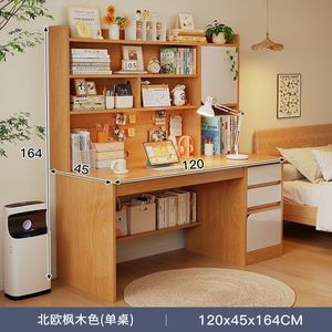 無垢材デスク学生ホーム学習ライティングデスク寝室本棚一体型テーブル本棚引き出し大人のコンピュータデスク