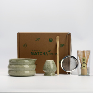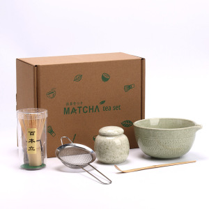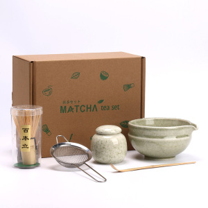 新しい抹茶ボウル、お茶道具、茶筅セット、ブラシ、スプーン、ふるい、グラインダー、抹茶パウダーティージャーの5点セット