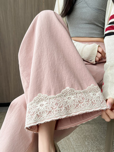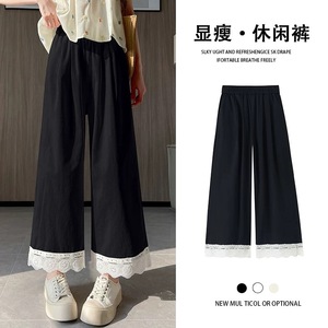 女性のための小さなレースステッチワイドレッグパンツ 2025 夏の新しいハイウエストスリムソリッドカラーカジュアルストレートパンツ