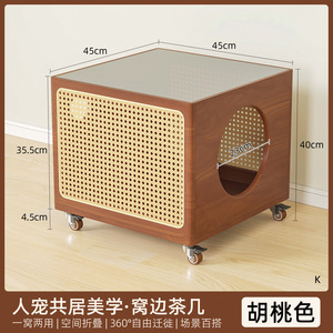 猫茶几人宠共用家具猫窝狗窝实木藤编卧室落地边几柜可移动多用途