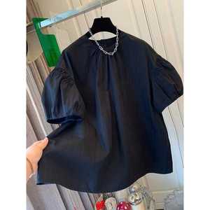 フレンチスタイルパフスリーブつぼみ半袖Tシャツシャツルーズファッションベビードールトップ女性用2025夏の新スタイル