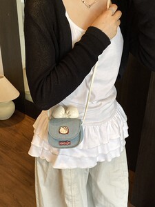 子供用バッグ 2025 新しい女の子かわいいクロスボディバッグ漫画猫女の子リボンショルダーメッセンジャーバッグトレンディ