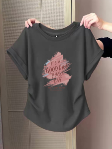 ウエスト痩身トップス、小さなフライングスリーブ、プリーツ、右肩、女性用多用途半袖Tシャツ、2025新しいファッション、西洋スタイルの夏