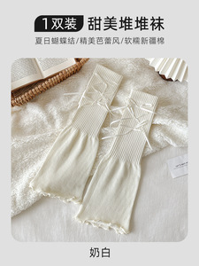 喇叭型春夏季薄款女款芭蕾蝴蝶结堆堆长筒灰色白色女生新款袜套