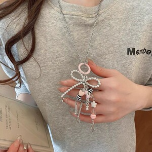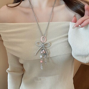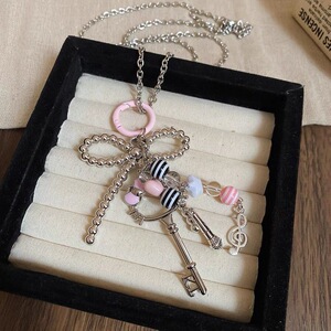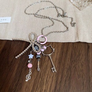かわいい漫画kt猫キーちょう结び音符ペンダントネックレス小众デザインマイク高级感セーターチェーン