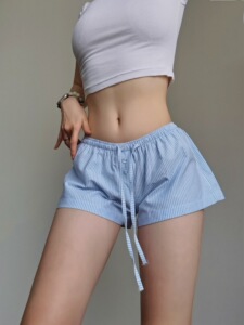 BM ストライプボタン巾着ローウエストショーツ女性のビーチルーズ夏多用途ローウエストカジュアルボトムホームパンツトレンディ