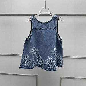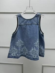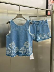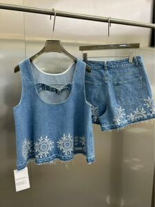 フランス式ga 25年夏の新作透かし彫りの刺繍は背中のデニムのゆったりとしたベストの毛の縁の半ズボンのカジュアルなスーツを現します。