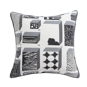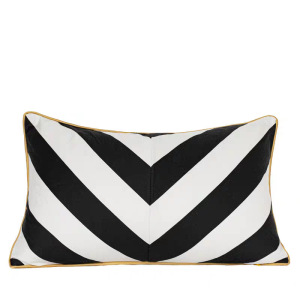 30x50cm 白黒幾何学模様刺繍ウエストピロー