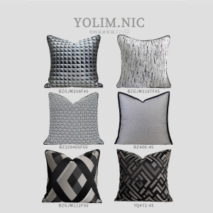 モダンシンプル軽豪華抱き枕カバー新中国式モデルルームリビングソファクッションクッション黒グレー高精密