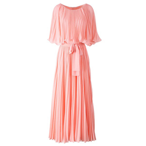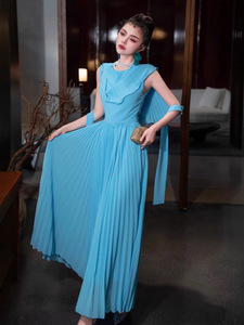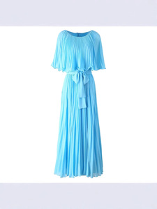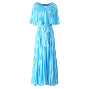 2025 新しい夏の女性のラウンドネックケーププリーツミッドウエストロング甘い気質ドレス