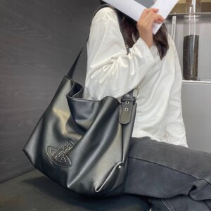 西太后大容量ソフトレザー トートバッグ レディース 2025年新作 ブラック カジュアル 通勤 ショルダーバッグ 斜め掛けバッグ 収納