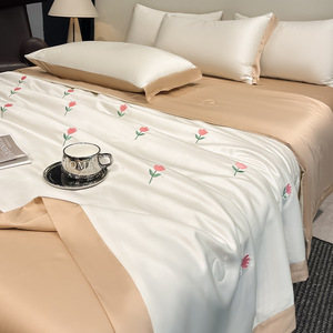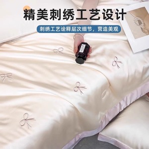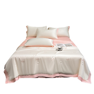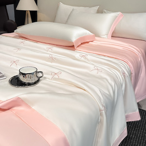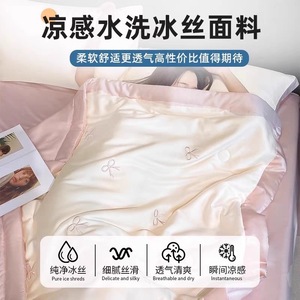 夏クールアイスシルクエアコンキルト夏クールキルト2025新機械洗えるサマーキルト4点セットシングルとダブル薄型キルト