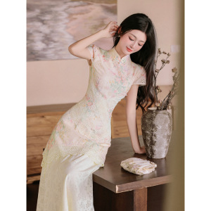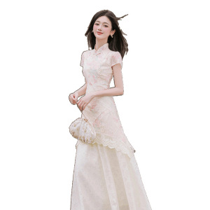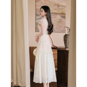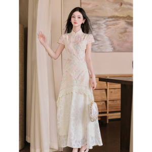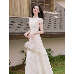 チャイナドレス新中国風女装2025新型超きれいなワンピース女性夏独特の美しいウエストスカート