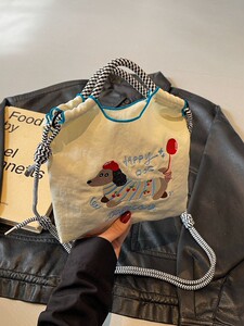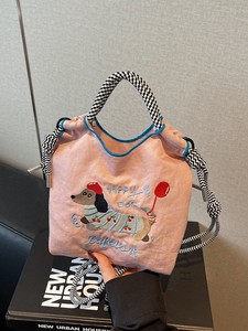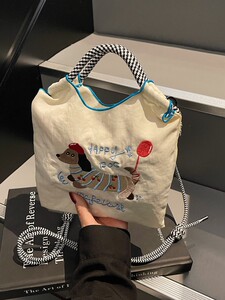 日系网红刺绣购物袋可爱手拎包牛津布袋尼龙斜挎便携手提单 肩包