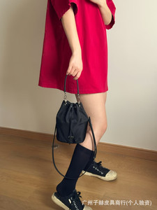 P's ナイロンミニバケットバッグ ショルダー ポータブル クロスボディ ホーボー 脇バッグ 三角ロゴ カジュアル ミッドセンチュリー レディースバッグ