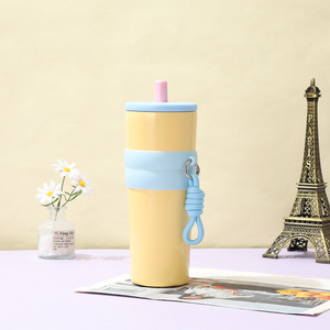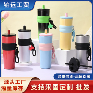 夏の人気モデル高颜値自慢ストローカップ大容量車載保温カップ携帯随行車載アイスカップ