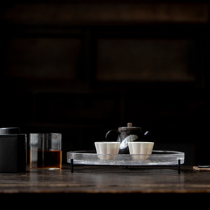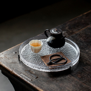 水晶ガラス円形茶盤フロスト透明創意乾燥泡茶台小茶盤壺承茶点盤
