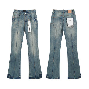 クロスボーダー外国貿易amアメリカンハイストリートリッピングパッチレター刺繍ウォッシュスリムストレートレッグジーンズパンツ