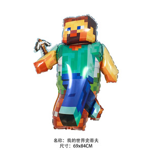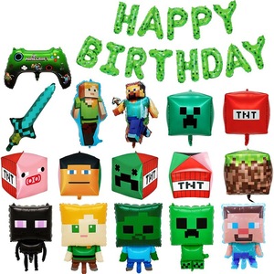 新しいクロスボーダー漫画スタイルのマインクラフトバルーンピクセルデジタル4Dブロック誕生日バナーレターバルーン
