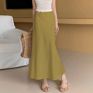 アセテートサテンスカートレディースフィッシュテールスカート夏ハイエンドサテンロングスカートヒップカバーロングスカートAラインスカート