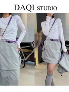 アウトドア機能!取り外し可能なスカート、撥水性、伸縮性ウエスト、通気性、速乾性、スプライシングワークウェアスカート、女性用ロングスカート、夏