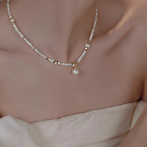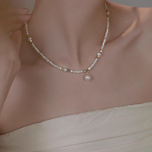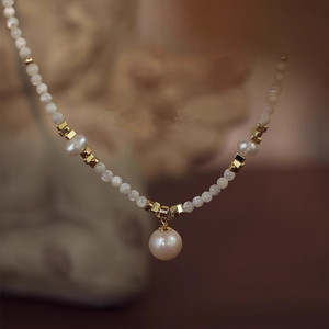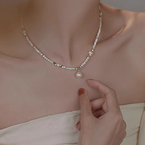 特殊な形の淡水パールネックレス、フェミニン、ネットセレブ、ブロークンゴールド、白蝶貝、軽い高級感、シンプルで優しい、マザーオブパール鎖骨チェーン