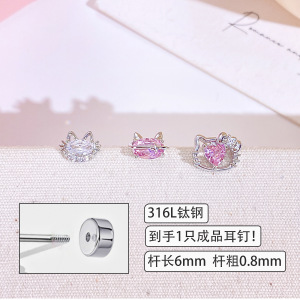 316Lチタン鋼銅金メッキマイクロジルコニウム耳骨釘ジルコンチタン鋼ピアスかわいい蝶ネクタイピンク