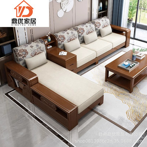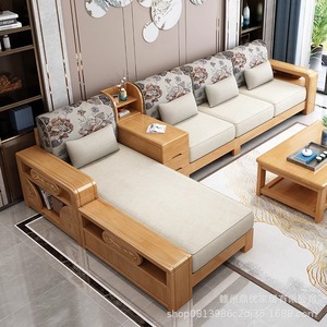 冬と夏のためのモダンでシンプルな無垢材のソファ、小さなアパートの組み合わせ、中国風のハイボックス収納、長椅子付き木製家具