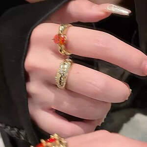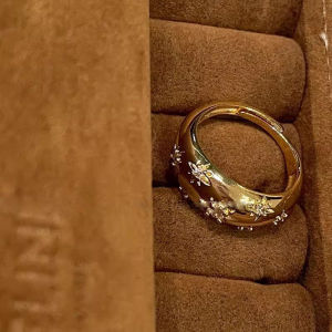 イタリアのテクスチャードゴールド彫刻クラフト手描き宮殿スタイルの2色ゴールド小中古代マイクロ散りばめられたダイヤモンドリング女性用