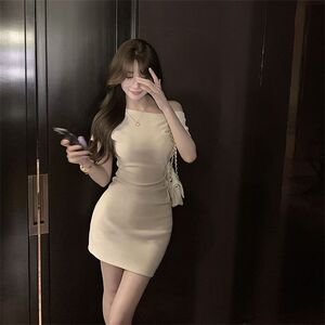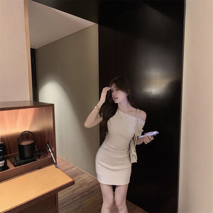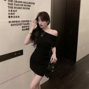 涼しげなロイヤルシスタースタイルの斜め肩ドレス2025新作レディース夏スリムヒップスカート夏