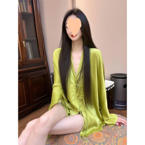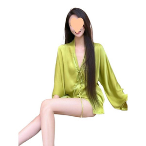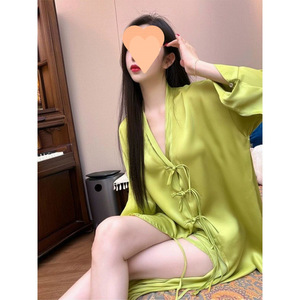 プラスサイズのスーパーフェアリーライト高級純粋な欲望スタイルセクシーな V ネックアイスシルクパジャマ女性のための春と夏の誘惑スカートホームウェアネグリジェ