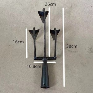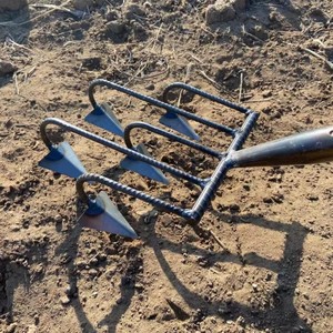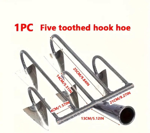 【海外発送可能】尖った多歯三角鍬、土壌耕起、マンガン鋼の厚みのある5本歯の鍬、多歯の鍬