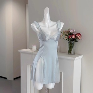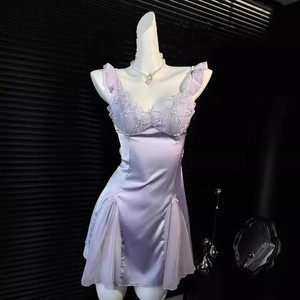 セクシーなパジャマ、ナイトガウン、夏の女性のハイエンド純粋な欲望の小さな胸パッド付きアイスシルクレースサスペンダーナイトガウンセット