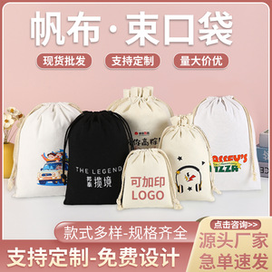 紐引きポケット制定logo黒色収納空白収納ポケット収縮トランペット綿布ミニキャンバス袋