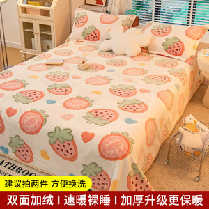 珊瑚绒床单单件加绒牛奶绒毛毯盖毯法兰绒毯子加厚冬季宿舍被单子