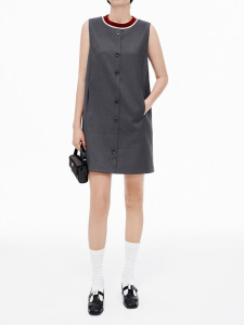 趙昭儀と同じスタイルのウール混紡グレーノースリーブドレス女性の夏の新しいウール襟スカート
