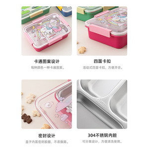 304 ステンレス鋼の分割弁当箱漫画密封されたテイクアウト学生弁当箱オフィスワーカー断熱食品グレード弁当箱