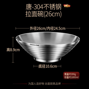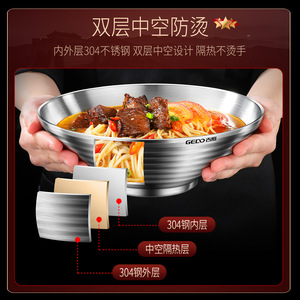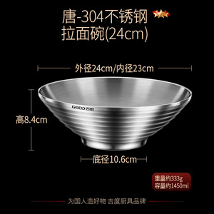 Jidu ラーメンボウル 304 ステンレス鋼スープヌードルボウルラーメンレストラン特別な家庭用二層大型スープボウル大ボウルライスボウルスープボウル