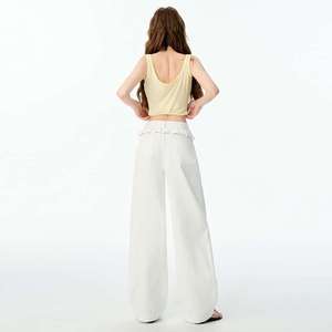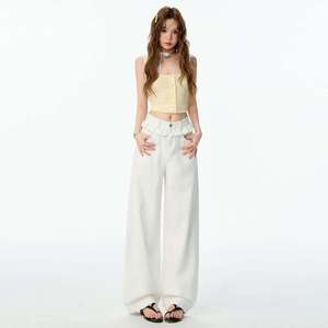 批发代发纯白夏日花边腰牛仔裤女夏季新款显瘦宽松美式辣妹设计感
