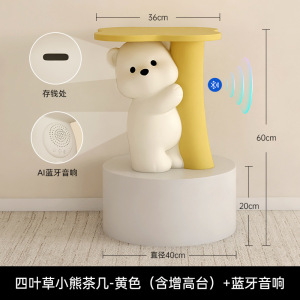 黄四つ葉のクローバー クマサイドテーブル貯金箱【Bluetoothモデル】