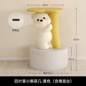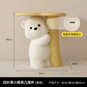 黄四つ葉のクローバー クマサイドテーブル【貯金箱】高さ40cm