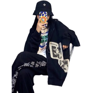アメリカンレトロオーバーサイズジャケットレディース春秋薄手ルーズレイジースタイルカーディガンフード付きカップルスウェットシャツトレンディイン