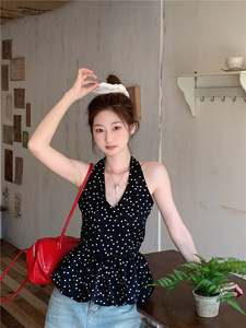 ホルターネック水玉ノースリーブベスト女性のための 2025 夏の新しい韓国デザインニッチ痩身スリムキャミソールトップ