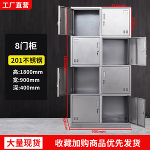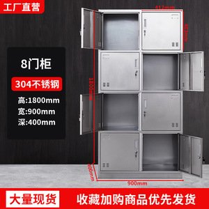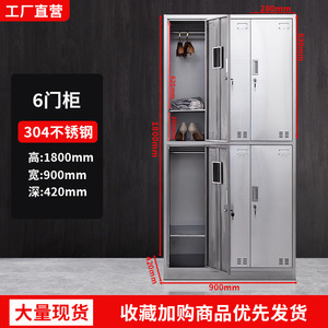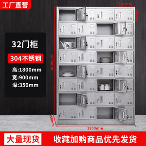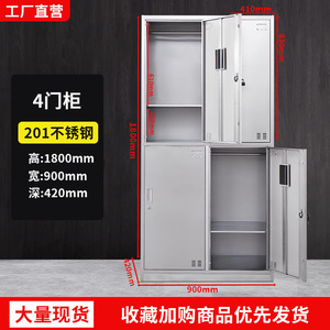 加厚304不锈钢更衣柜食品厂员工带锁钢制储物柜无尘车间多门鞋柜