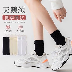 パイルソックス、薄手のレディースミッドカーフソックス、春夏の万能ソックス、無地の二本針、脱落しない、トレンディな夏のアイスソックス
