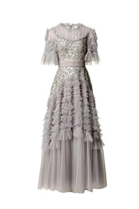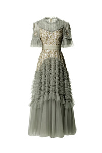 国境を越えた貿易 2025 新しい夏の婦人服ヘビービーズステッチフリルレース特大裾ドレス