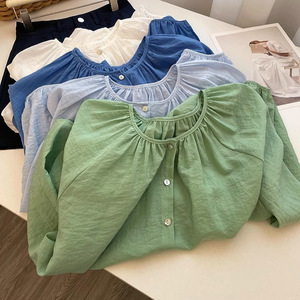 韓国の甘いラウンドネックシェルボタン日焼け止めシャツ女性の夏軽量通気性ルーズ多用途ジャケット