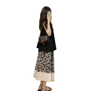 香港スタイルの女性用痩身ツーピーススーツ 2025 夏のファッショナブルな気質と花柄のスカートが付いた年齢を軽減するノースリーブトップ
