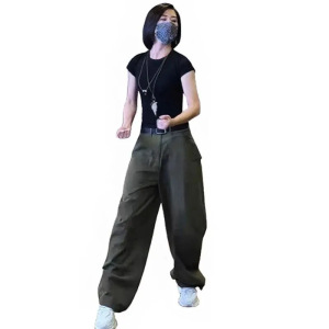 一枚/おしゃれなアメリカのギャルの修身はやせています。黒い半袖の上着はゆったりしていて、やせています。