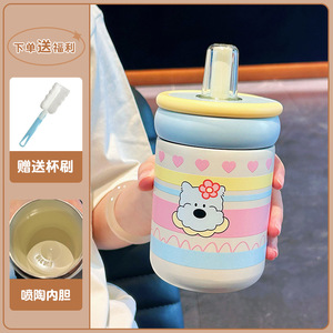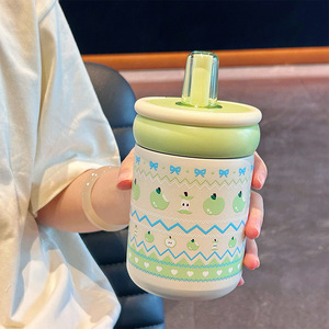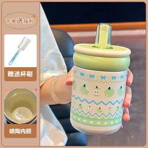 新型ins女子高颜値ストローカップ316ステンレス保温カップ陶磁器内胆カップ学生随行カップ